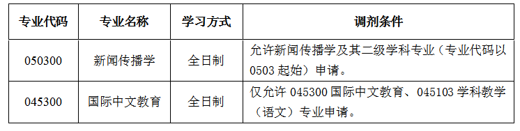 新闻传播学(050300)、国际中文教育(045300)目前有部分调剂名额,欢迎广大考生积极调剂报考。
