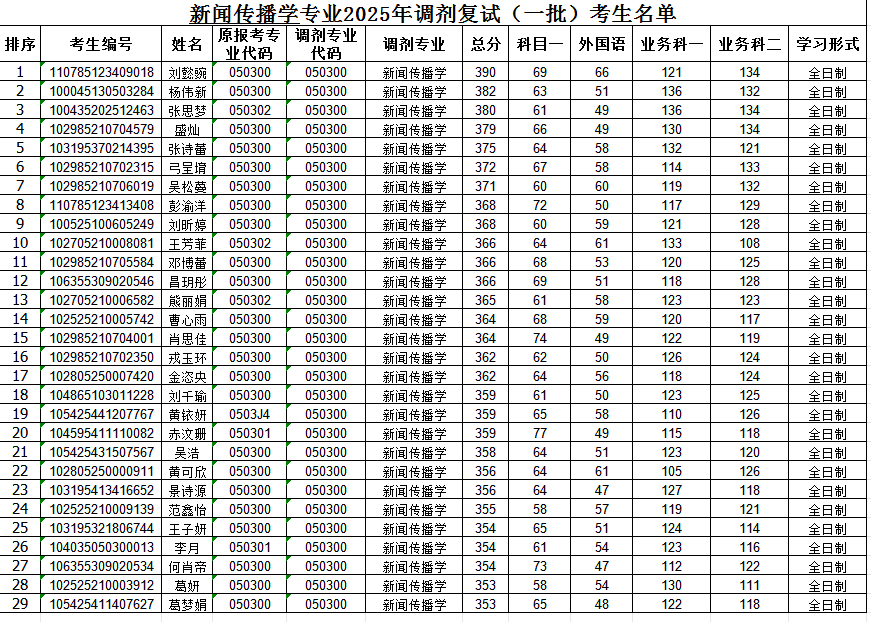 新闻传播学2025年调剂复试(第一批)考生名单