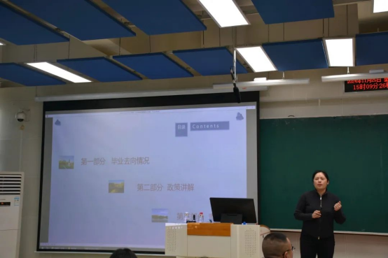讲座中,楚晓梅紧紧围绕毕业生关注点,分别从“我校往届毕业生整体就业情况”“我院往届毕业生就业去向”“就业信息填报与手续办理”等三个方面分析了毕业生所面临的选择与趋势,梳理了就业信息上传与手续办理的详细流程。