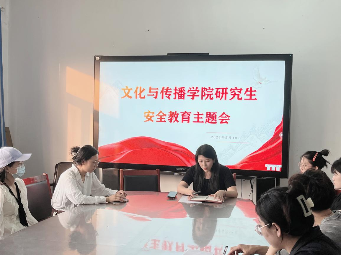 为切实教育学生珍爱生命、热爱生命,关怀自己与他人,帮助学生构建健全的人格,增强面对挫折的勇气,培养笑对困难、挑战挫折的乐观精神,让学生更好地享受充实、健康的校园生活。5月23日下午,文化与传播学院研究生辅导员秦赞组织全体研究生班委及宿舍长于第三办公楼五楼会议室开展了“生命至上 安全第一”主题安全教育班会。
