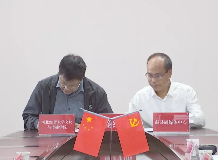 10月8日,文化与传播学院、献县融媒体中心签订校媒合作协议暨挂牌仪式在献县融媒体中心举行。文化与传播学院党委书记蔡金续、副院长景义新、马兴祥及教师代表,献县人大常委会主任彭春河、副主任齐可往、县融媒体中心主任左书忠出席仪式。