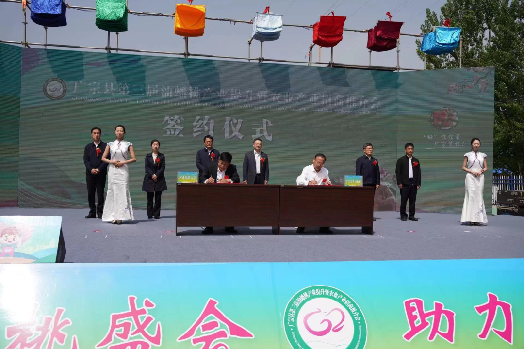 4月28日,校党委副书记、校长黄晟,党委常委、副校长杨金田带队赴邢台市广宗县参加第三届油蟠桃产业提升会开幕式并签署乡村振兴战略合作协议。省农业农村厅二级巡视员王旗,市政协副主席贾芳,广宗县四大班子领导出席,我校科研处及文化与传播学院负责人,广宗县各乡镇负责人参加此次活动。