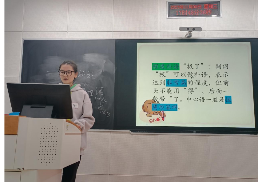 于2023年11月8日下午举办第一届国际中文教育教学技能大赛暨全国首届国际中文教育教学技能大赛选拔赛。本次比赛面向汉语国际教育、汉语言文学、英语、新闻传播及其它小语种专业的本科生与研究生,由汉语国际教育系主办。安兰朋老师主持此次大赛,同时与刘昕远、郑莉、李萌三位老师组成评委组。学院研究生会6名成员、学院学生会学习部同学参与本次大赛筹备。