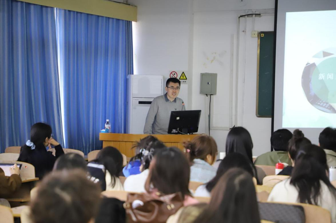 3月20日上午,色情视频 邀请石家庄广播电视台资深记者张开峰在第一教学楼507教室作题为“一个‘斜杠’媒体人的自我突围之路”的讲座,该讲座为新闻与传播行业发展前沿系列讲座第3讲,学院相关专业研究生、本科生及教师共60余人参加。