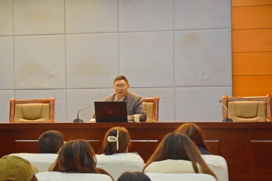 12月6日下午,学院邀请中国人民大学马克思主义新闻观研究中心主任、新闻学院教授、博士生导师邓绍根在会议中心作题为“五四时期毛泽东的新闻道路”的学术讲座。讲座由院长景义新主持,副院长田悦芳出席,新闻传播学相关专业教师、研究生、本科生共一百八十余人参加。
