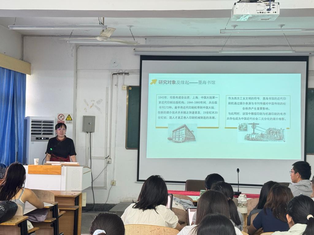 6月16日上午,色情视频 主办的新闻与传播理论前沿论坛第7讲在第一教学楼507教室举行。辽宁大学程丽红教授应邀作题为“技术嵌入与文化裂变:以墨海书馆为中心的考察”的学术讲座,学院部分教师和相关专业研究生共100余人参加。